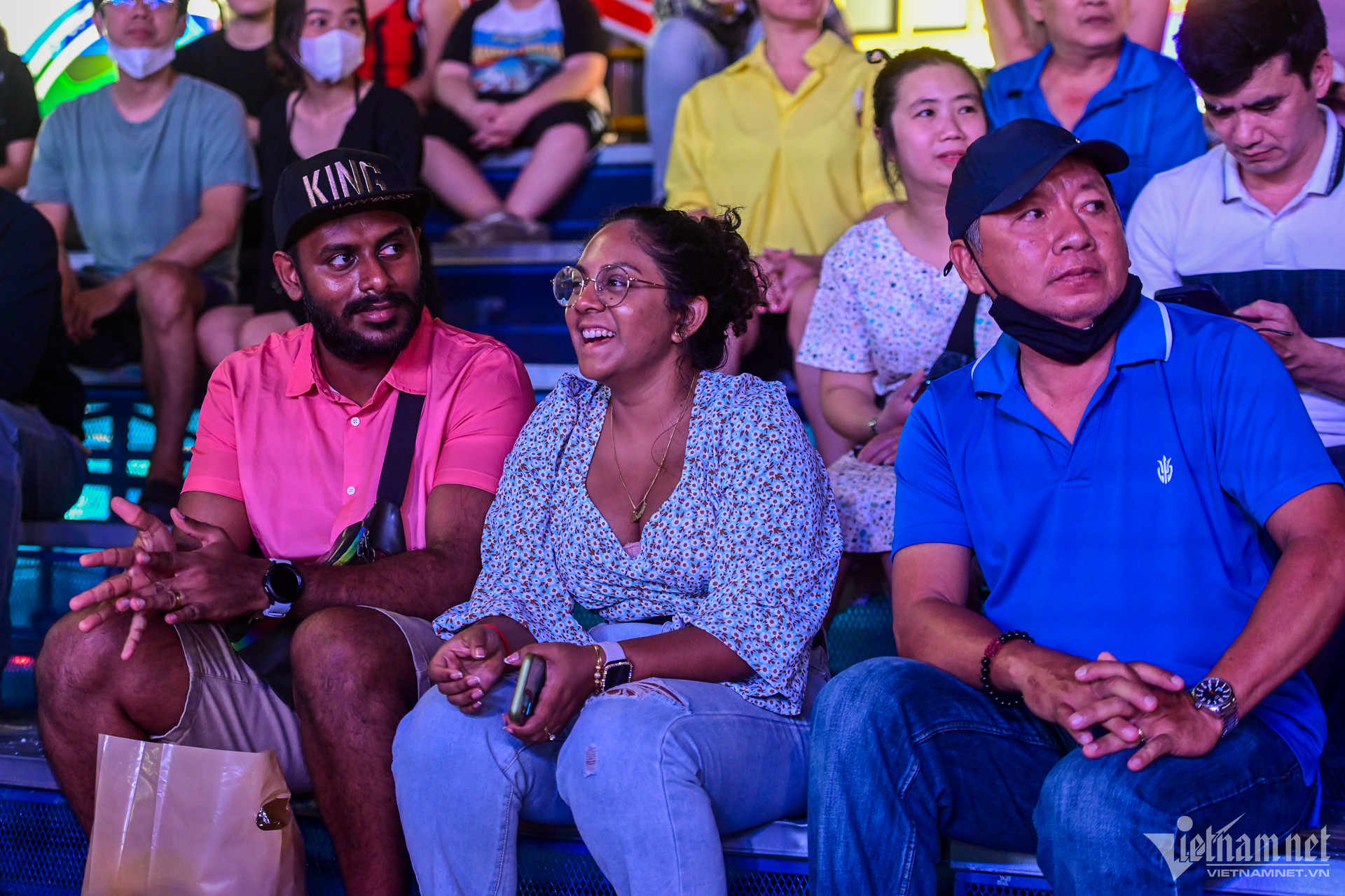 Rất đông người dân đã đến theo dõi, trong đó có cả du khách nước ngoài. "Chúng tôi vừa đi tham quan chợ Bến Thành thấy có chương trình nhạc ở đây nên qua xem và thấy rất sôi động, nhiều màu sắc", nữ du khách đến từ Hà Lan chia sẻ.
