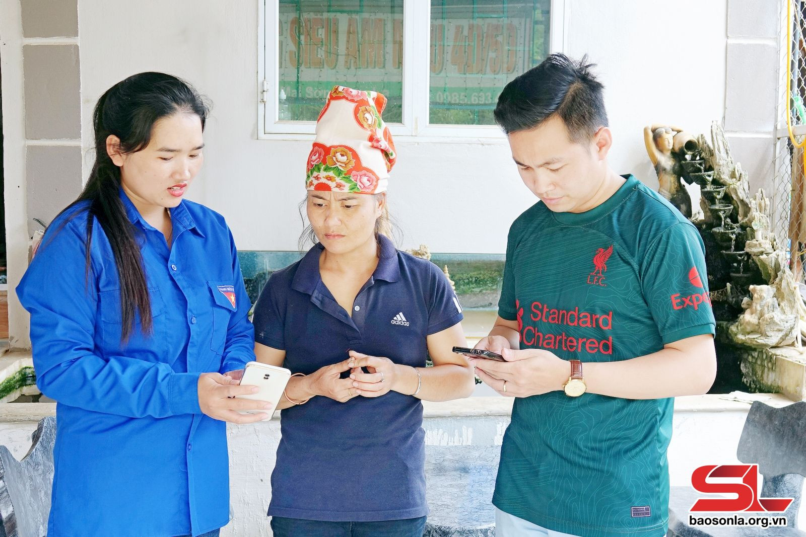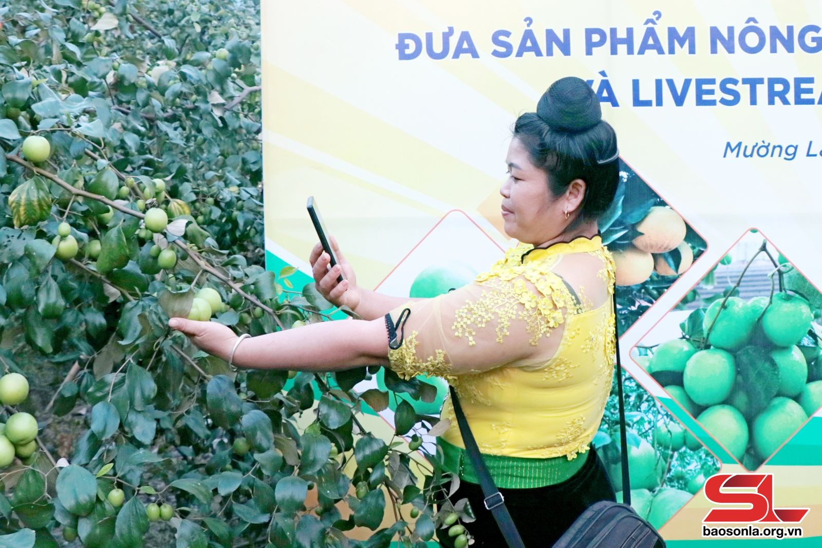 Chị Hà Thị Chình, bản Văng Lùng, xã Chiềng Hặc, huyện Yên Châu sử dụng mạng xã hội facebook, zalo để truyền tải các hình ảnh, video chăm sóc, thu hái vườn cây ăn quả và thưởng thức các loại trái cây ngay tại vườn, giúp kết nối tiêu thụ sản phẩm nông sản của gia đình.