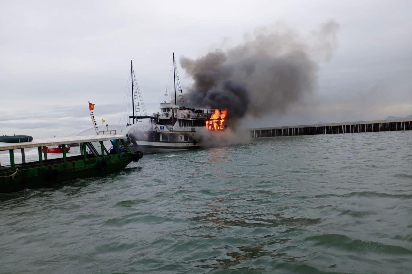 Hai tàu du lịch cháy dữ dội trên vịnh Hạ Long