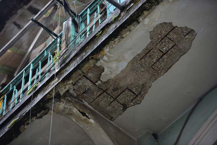 Chung cư 44 năm tuổi này có nhiều hạng mục đã xuống cấp trầm trọng. Mặc dù tọa lạc ở vị trí khá đắt đỏ ngay góc ngã tư Châu Văn Liêm và Trần Hưng Đạo nhưng mặt tiền của chung cư rất cũ kỹ, mục nát. Bên dưới chung cư, một số hộ dân tận dụng mặt tiền để kinh doanh quá ăn, shop thời trang, cho thuê mặt bằng quán trà sữa. Phía bên trong, các hạng mục sử dụng chung như cầu thang, trần nhà đều đã nứt toác, nhiều mảng bê tông, tường gạch bong tróc ra vô cùng nguy hiểm.