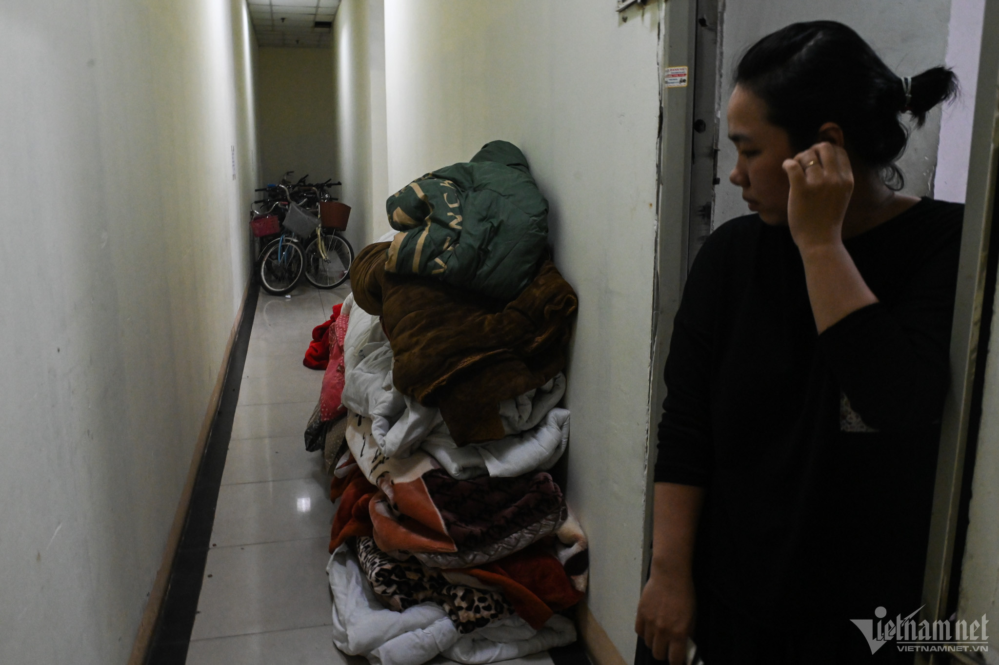 Lối đi lại dưới tầng 1 ẩm thấp, chất đầy chăn màn, khá mất mỹ quan. Cư dân tòa nhà đã nhiều lần phản ánh, đề nghị sang sửa khu vực không gian chung nhưng đến nay vẫn chưa có sự thay đổi.