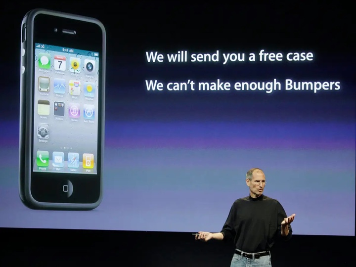 Trong khi giới phê bình lúc đó cho rằng Apple có thể tung ra một phiên bản iPhone 4 tái thiết kế, hoặc triệu hồi máy để sửa chữa, thì Jobs vẫn kiên định với iPhone 4 và hứa hẹn tặng khách hàng một cái ốp bumper miễn phí. Khách hàng nào đã mua ốp lưng sẽ được hoàn tiền, Jobs nói.