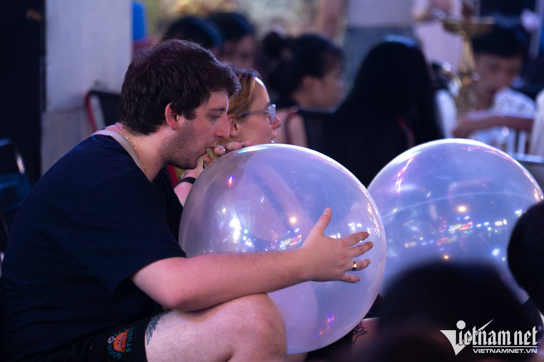 Tối 13/8, nhiều khách tới ăn uống ở phố đi bộ Bùi Viện, TP.HCM đã sử dụng bóng cười, loại "đồ chơi" chứa khí N2O vốn chỉ được nhà nước cho phép mua bán, sản xuất với mục đích công nghiệp.