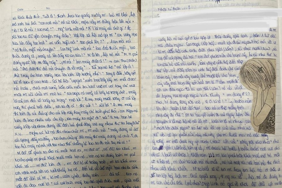 Đọc những câu chuyện thương tâm của nạn nhân bạo lực học đường, Phạm Mai Hương (TP.HCM) xót xa lật giở lại những trang nhật ký cũ đẫm nước mắt được viết vào thời điểm em là nữ sinh lớp 10.