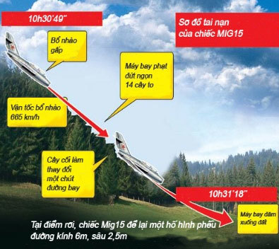 Xin nhắc lại là vào ngày 27-3-1968, Gagarin cùng huấn luyện viên bay Vladimir Seregin bay tập trên chiếc máy bay huấn luyện MIG 15. Máy bay đang bổ nhào thì bị rơi đâm đầu xuống đất tại khu rừng gần Kirdzach. Cú đâm mạnh đến mức chiếc máy bay nặng 5 tấn đã vỡ tan hệt như một cái lọ thủy tinh bị đập vào bức tường bê tông.