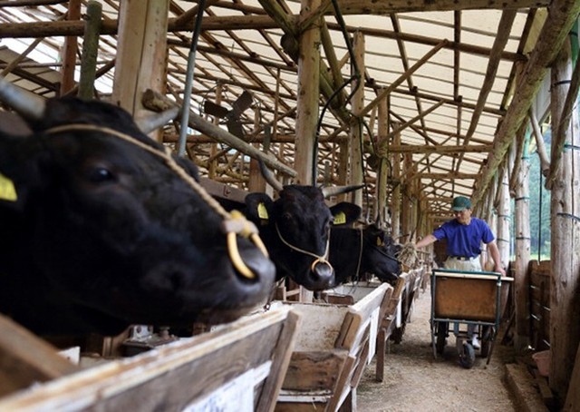 Chúng được cho chăn thả, nhưng không quá xa chuồng trại. Mỗi trang trại chỉ được nuôi 10 - 15 con bò trong kỳ vỗ béo và vài ba con bê. Trong 10 tháng đầu kể từ khi cai sữa, bò Kobe chỉ được phép có cân nặng giới hạn 250 - 280 kg/con. Ảnh: Tonymcnicol.