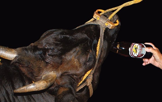Vào khoảng tháng 8 đến tháng 10 hàng năm, khi nhiệt độ ngoài trời lên tới 30 độ C, những con bò thường bị nóng và điều này khiến chúng bỏ ăn. Khi đó, người nuôi sẽ cho bò uống bia để kích thích vị giác của chúng, đồng thời giúp thức ăn dễ tiêu hóa hơn. Ảnh: Tonymcnicol.