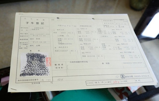 Tại các trại nuôi, bò Kobe được đóng dấu tai cẩn thận, và chúng cũng có giấy "khai sinh" riêng. Giấy này đảm bảo nguồn gốc thuần chủng của bò mẹ cũng như ba đời tổ tiên của con bò. Ảnh: Tonymcnicol.