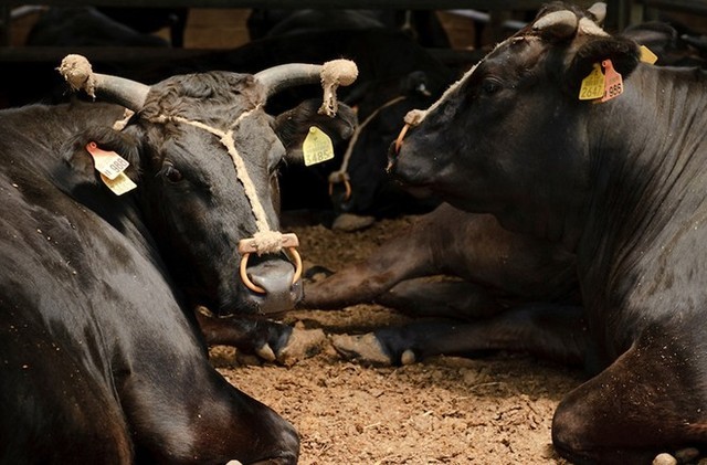 Bò lấy thịt được thiến để đảm bảo sự tinh khiết trong từng thớ thịt. Trải qua 18 - 19 tháng vỗ béo, những con bò có tuổi thọ khoảng 3 năm sẽ đạt tổng trọng lượng trên 700 kg. Khi đó, chúng sẽ được phân loại theo chất lượng thịt để mang tên loại bò đắt nhất thế giới (Kobe) hay chỉ theo tên của trang trại. Ảnh: Tonymcnicol.