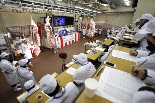 Những con bò xuất chuồng phải được mổ ngay tại khu vực chăn nuôi, sau đó đóng dấu hàng loạt cơ quan chuyên trách Nhật Bản, trong đó có đơn vị chuyên quảng bá thịt bò Kobe. Những con bò đủ tiêu chuẩn sẽ được mang bán đấu giá. Con ngon nhất sẽ chỉ có tổng lượng thịt khoảng 470 kg, và có mức giá tương đương 1 tỷ đồng. Ảnh: Getty Images.