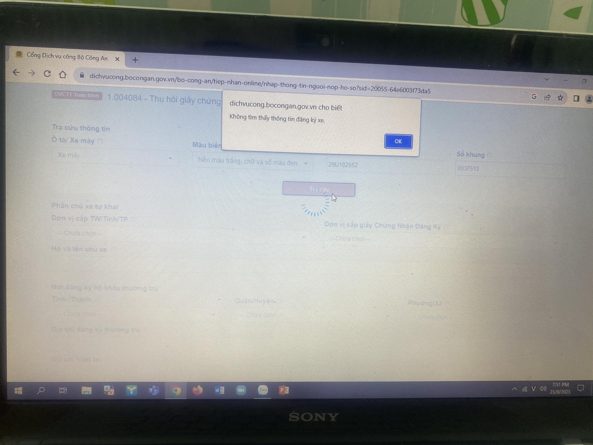 Sau khi biết thông tin xe mất trộm vẫn làm thủ tục thu hồi biển số được, anh Huy đã vào hệ thống để thực hiện thì bất ngờ không còn dữ liệu.