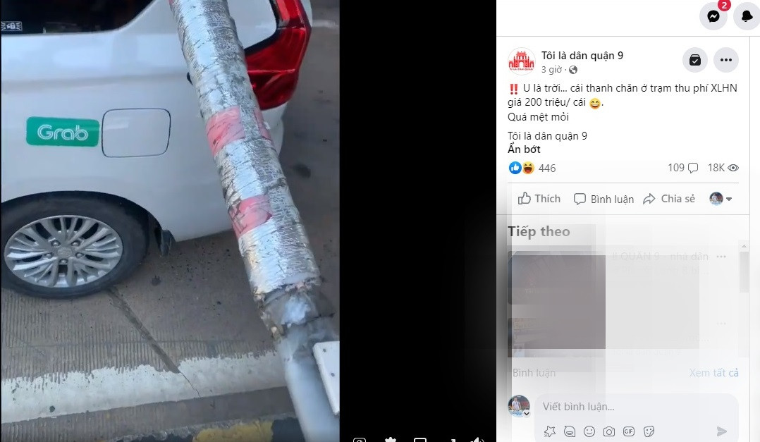 Sáng 26/6, đoạn clip dài hơn 8 phút lan truyền trên mạng Facebook có nội dung cái thanh chắn ở trạm thu phí Xa lộ Hà Nội giá 200 triệu, thu hút nhiều lượt chia sẻ và nhận xét.