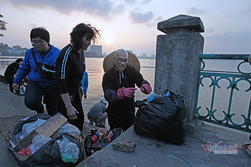 Sư thầy Tịnh Giác cho biết, trước đây sư thầy đi làm việc này mỗi năm một nơi. Từ vài năm nay, sư thầy thường dọn rác, túi nilon tại Hồ Tây, đoạn trên đường Thanh Niên cách chùa Phúc Sơn hơn 20 km.