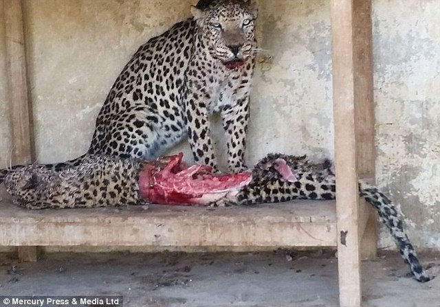 Hạ gục được con lợn rừng khá lớn, nhưng báo hoa ngay sau đó phải bỏ con mồi chạy thoát thân vì sự xuất hiện của sư tử cái.