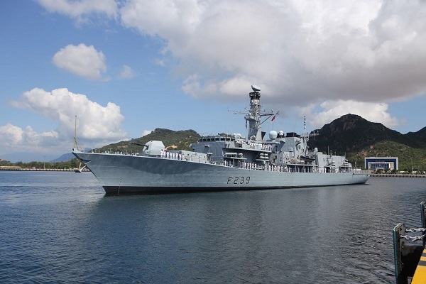 | Chiến hạm HMS Richmond ở cảng Cam Ranh, Khánh Hòa sáng 1/10. Ảnh: Đại sứ quán Anh/ Twitter |