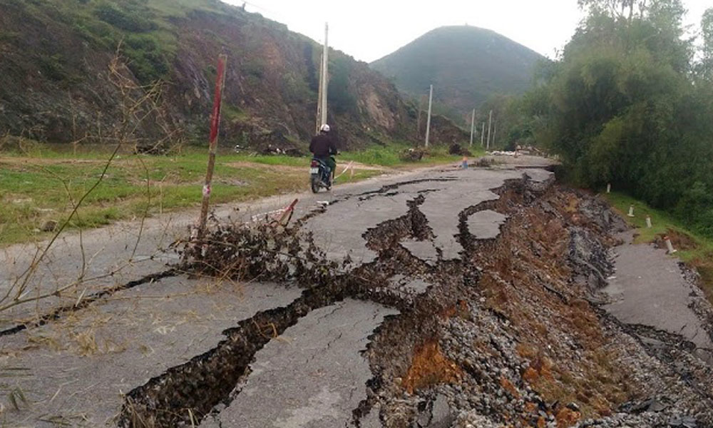 Hơn 100m đê biển Tây đi qua huyện Trần Văn Thời (Cà Mau) bị sụt lún nghiêm trọng, sau hơn một năm đưa vào sử dụng.