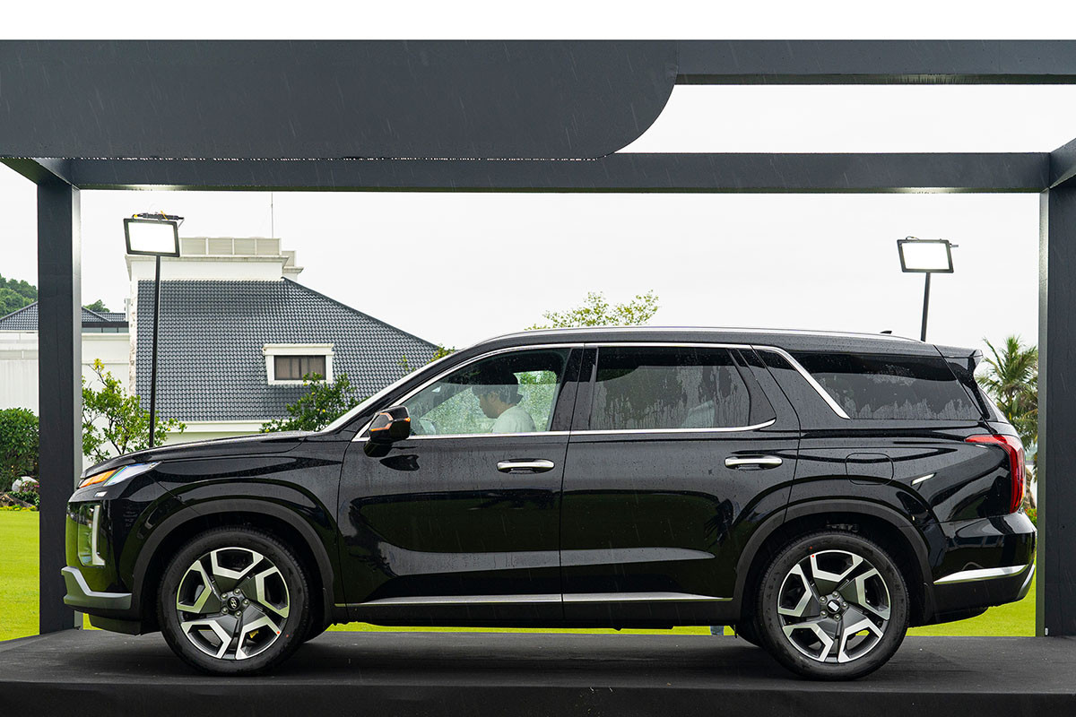 Về kích thước, Hyundai Palisade 2023 có số đo lần lượt là 4.995 x 1.975 x 1.785 mm, chiều dài cơ sở 2.900 mm cùng khoảng sáng gầm xe là 203 mm. Xe có tuỳ chọn la-zăng 18 inch cho bản Exclusive và 20 inch cho bản Prestige.
