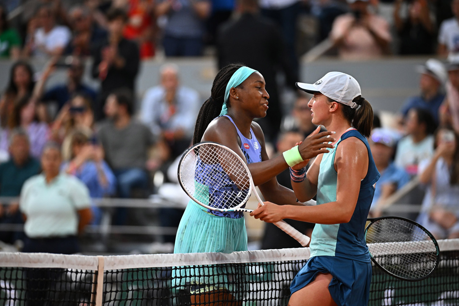 Trên khán đài, chân sút Robert Lewandowski là một trong nhiều nhân chứng trực tiếp của trận đấu. Họ dành cho nhau một cái ôm, tấm lòng của những người đồng hương. Một câu hỏi được đặt ra: đến bao giờ và ai sẽ là người ngăn cản đà chiến thắng của Swiatek?