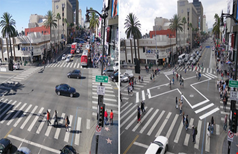 Ngã tư giữa con đường Hollywood Boulevard và Highland Avenue nổi tiếng là một trong những giao lộ nguy hiểm nhất đối với người đi bộ ở Los Angeles, Mỹ.