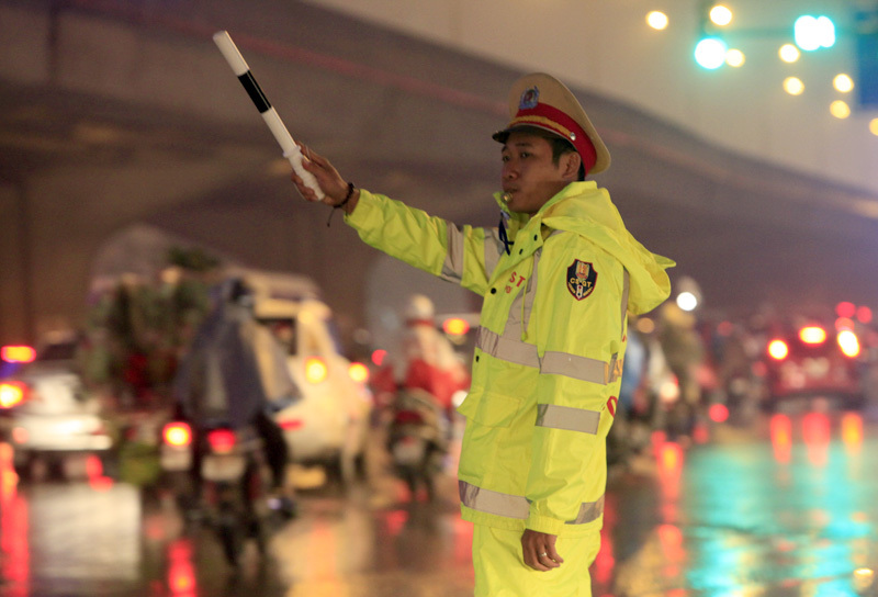 Hình ảnh cần mẫn của CSGT Hà Nội những ngày cuối năm
