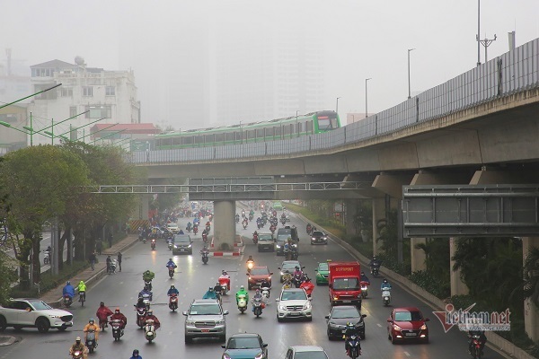 Hà Nội chìm trong mưa phùn, sương giăng từ sáng đến trưa