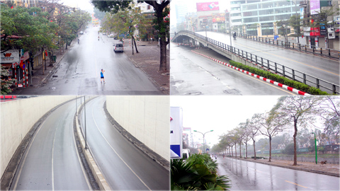 Sáng đầu tiên của năm mới, những con phố Hà Nội thật yên bình, vắng vẻ, nhiều người dậy sớm tận hưởng cảm giác hiếm có.