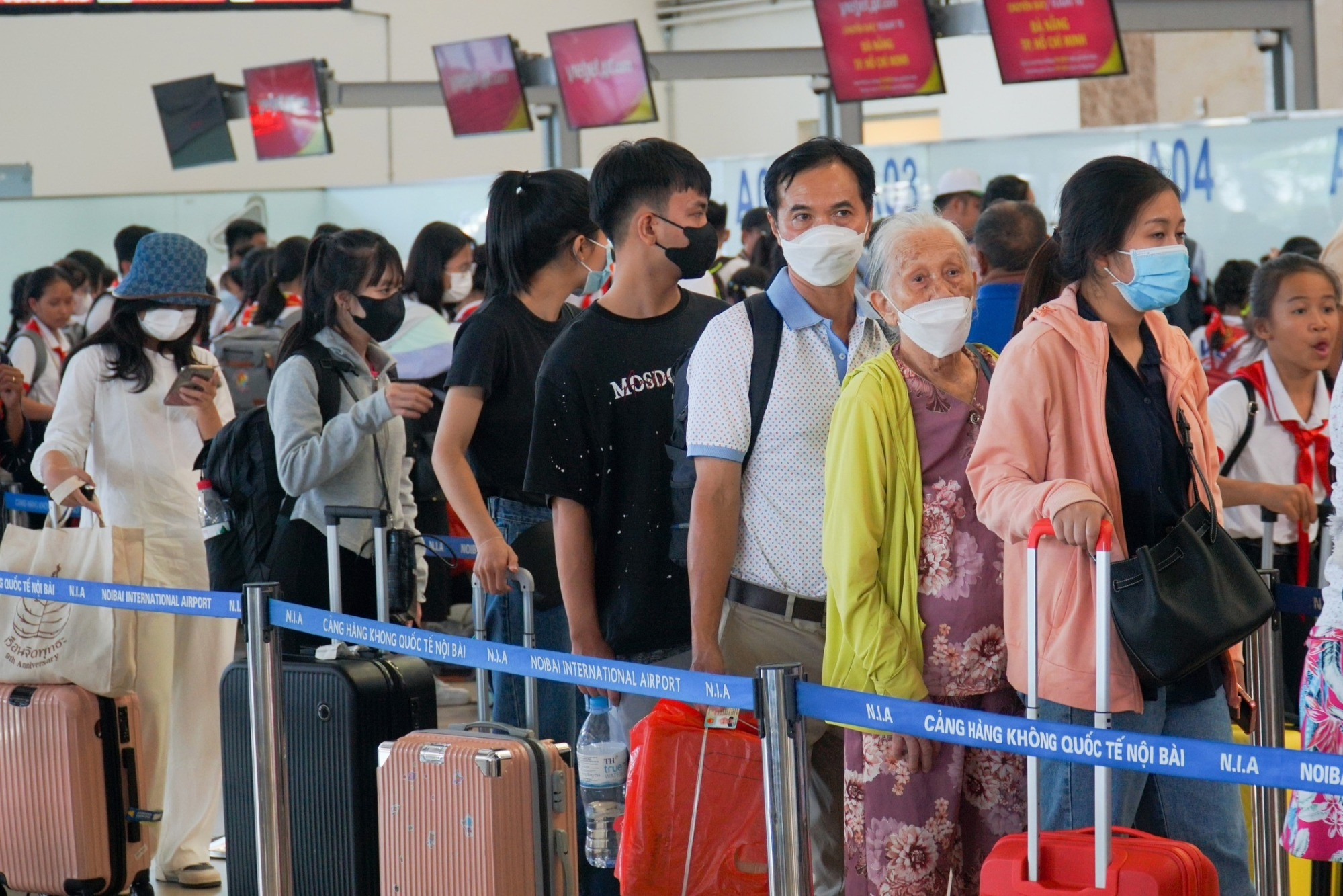 Chưa nghỉ lễ, gần nghìn khách đã xếp hàng chờ check-in tại sân bay Nội Bài