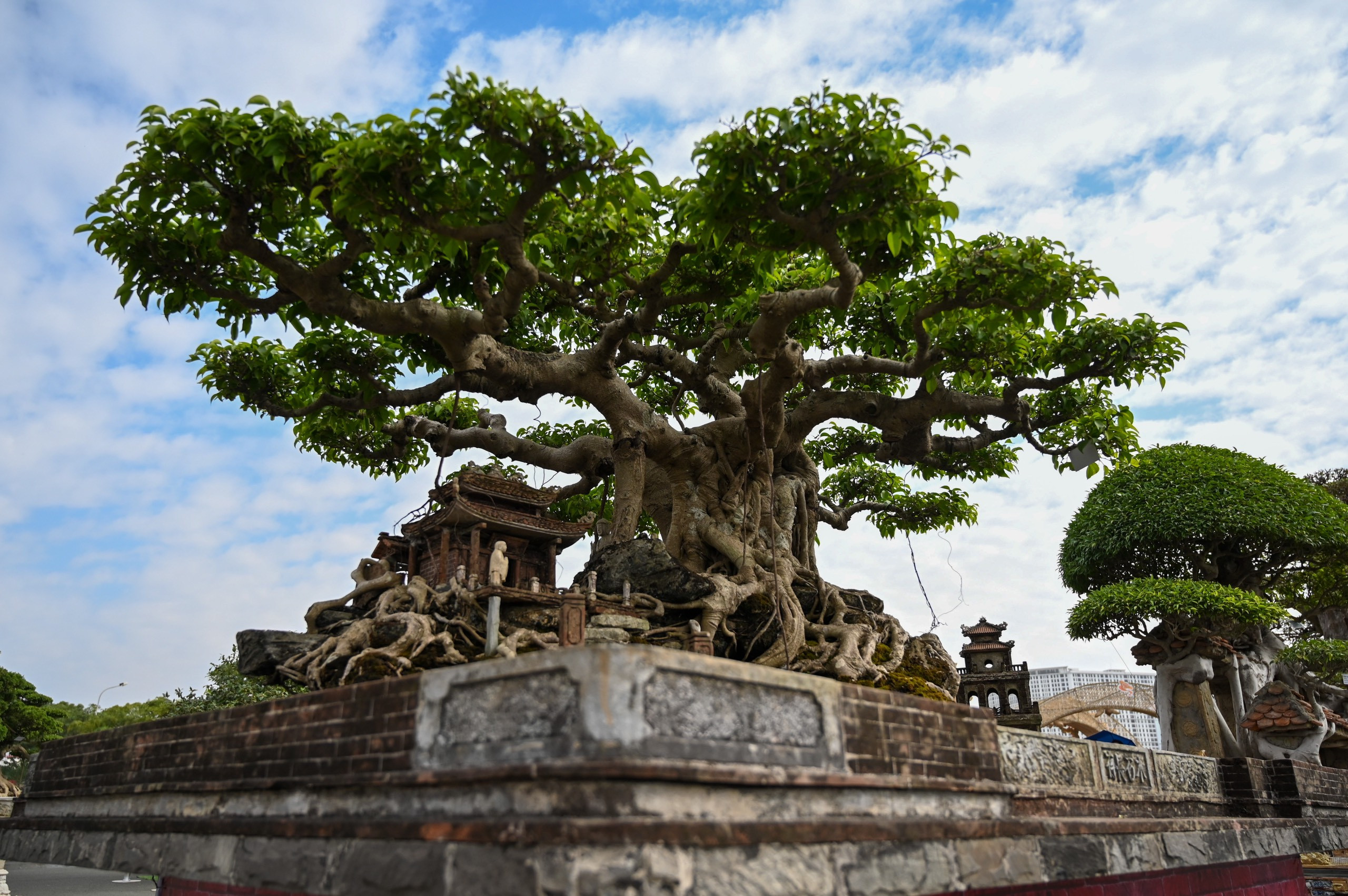 Hàng trăm tác phẩm sinh vật cảnh - bonsai với dáng thế đẹp xuất hiện tại một triển lãm ở gần sân vận động Mỹ Đình (Hà Nội). Có nhiều cây cảnh được rao bán giá từ hàng trăm triệu đến 10 tỷ đồng.