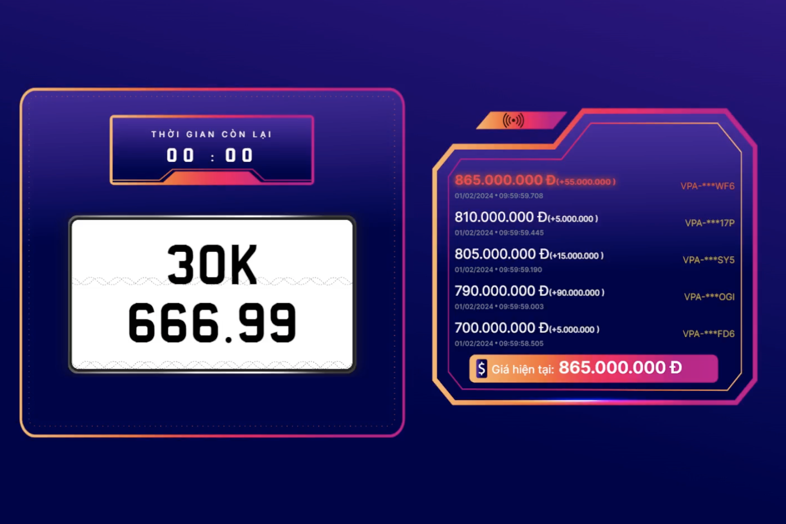 Đấu giá biển số sáng 1/2: Biển 30K-666.99 giá cao nhất 865 triệu đồng