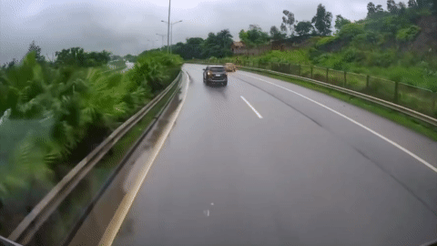 Ô tô lao vun vút trên cao tốc bỗng rơi xuống cầu sập vì mưa lũ