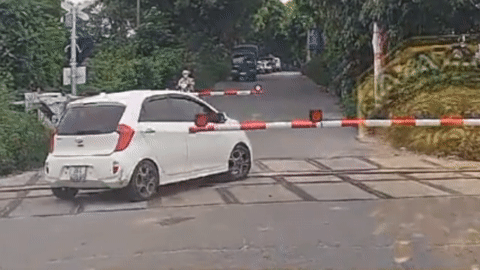 Ô tô con thản nhiên lách qua rào chắn khi tàu sắp đến ở Hà Nội
