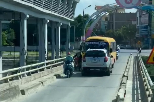 Tình huống hai ô tô đi qua cầu hẹp ở Hải Dương dưới đây không ai chịu nhường ai khiến nhiều người thắc mắc xe nào mới phải lùi?