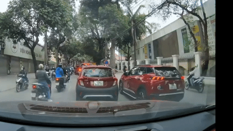 Không chỉ xe máy mà nhiều tài xế ô tô đã "trèo" hẳn lên vỉa hè để đi cho nhanh trên con phố ngay trung tâm quận Ba Đình, Hà Nội.