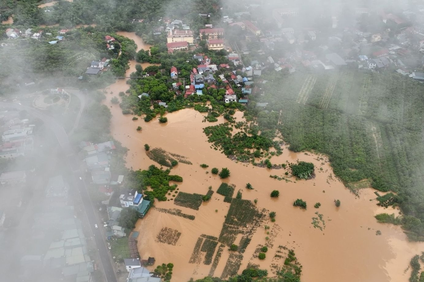Mưa lớn liên tục tại huyện Mai Sơn (tỉnh Sơn La) khiến nhiều nơi chìm trong biển nước. Nước lũ cuồn cuộn tại xã Chiềng Nơi đã cuốn đứt 3 cầu treo, làm 6 người mất tích.