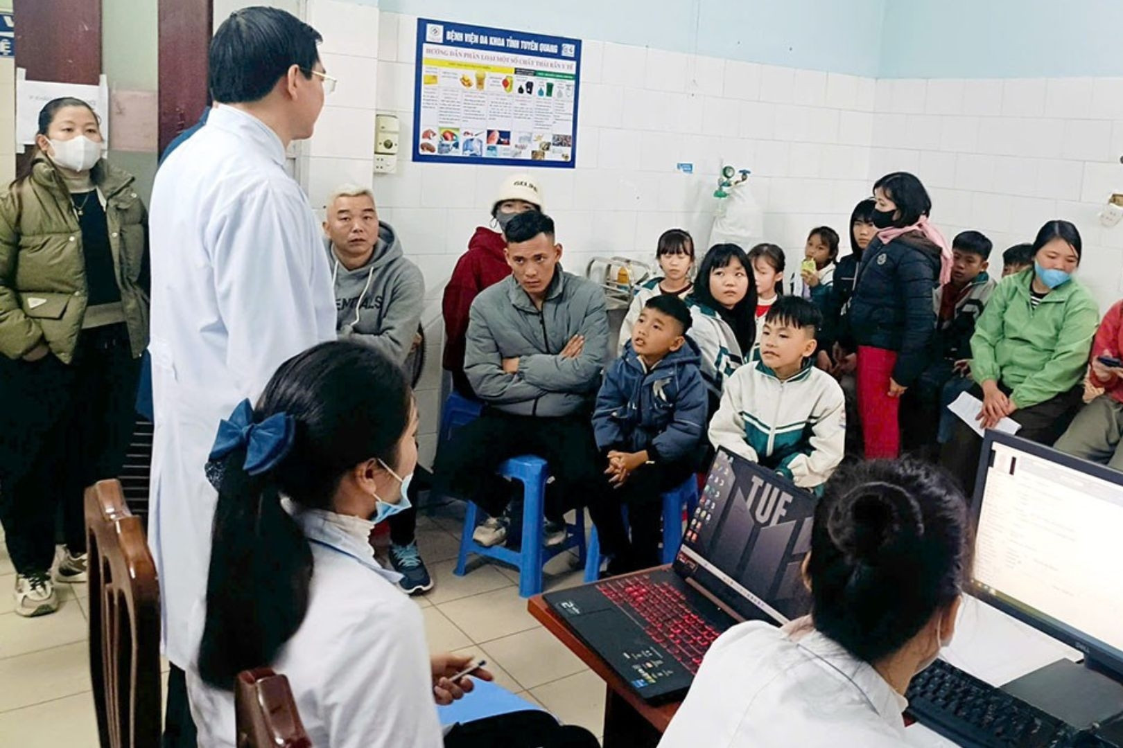 28 học sinh nhập viện sau khi nhặt được lọ nước màu hồng và chia nhau uống. Trong đó có 5 trẻ phải chuyển đến Bệnh viện Nhi Trung ương.
