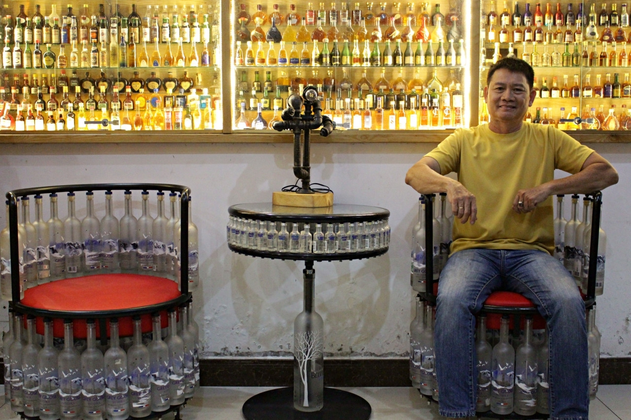 Ngôi nhà đặc biệt ở TPHCM có 70% đồ nội thất, vật dụng trang trí được chủ nhân sáng tạo bằng cách tận dụng hơn 10.000 vỏ chai, lọ thủy tinh cũ.