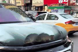 Một người đàn ông ở Thẩm Dương, Trung Quốc khiến cư dân mạng ngỡ ngàng khi biến khoảng trống giữa nắp capo và lớp phủ ô tô thành một bể cá mini để đựng chiến lợi phẩm vừa câu được.
