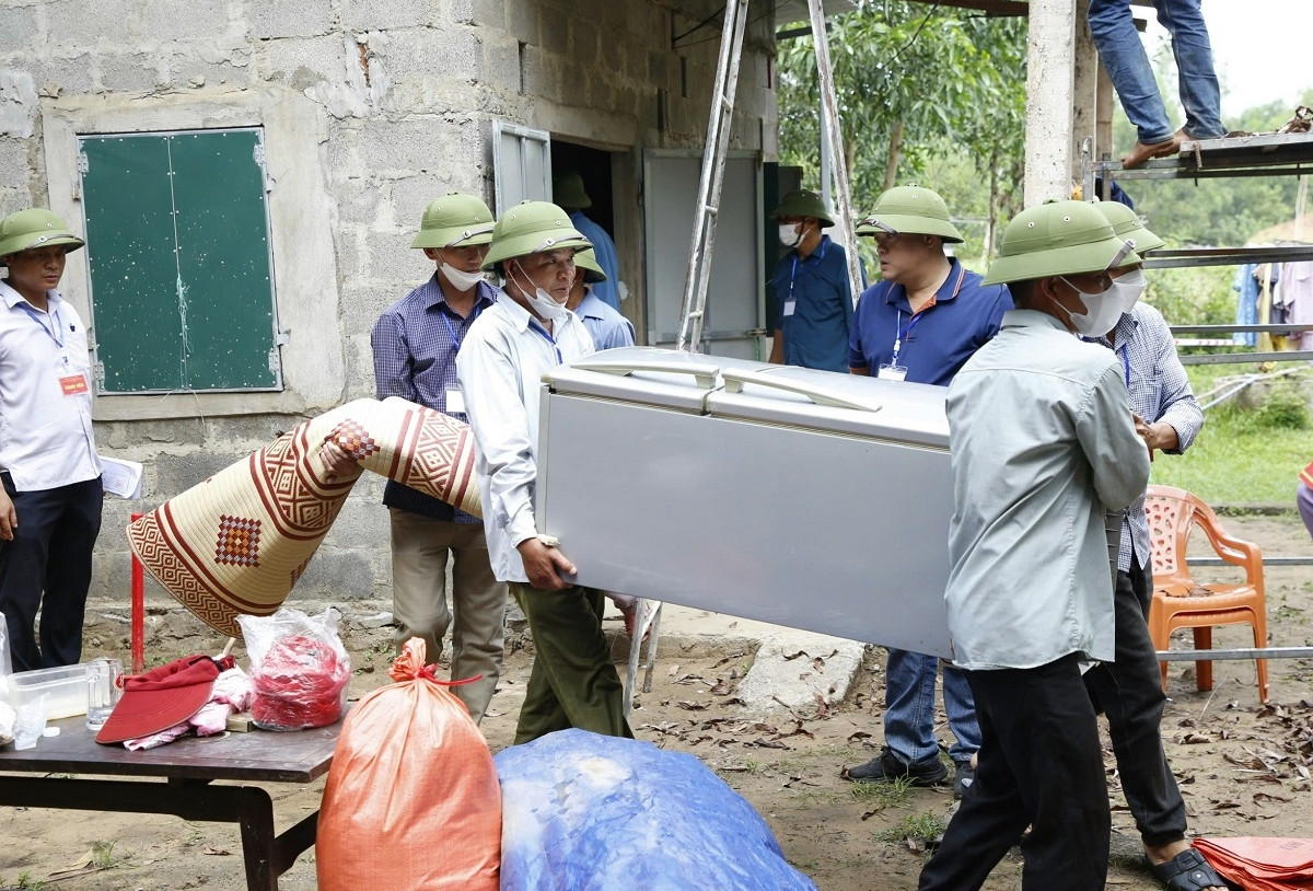 Toàn xã Tân Hóa có gần 400 nhà dân bị ngập lụt từ 0,5-2m. Nước đang có xu hướng dâng cao, người dân đã chuẩn bị đồ đạc, vật dụng và tài sản lên nhà phao tránh trú.