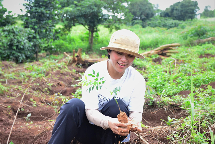 “Một triệu cây xanh đang được trồng xen vào những quả đồi cà phê độc canh để mai này thành rừng xanh bát ngát. Đây là bước đầu để tụi mình có sản phẩm cà phê nhãn xanh và tiến tới bán tín chỉ carbon”.