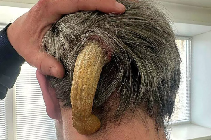 NGA - Người đàn ông chung sống suốt 3 năm với chiếc sừng dài 12cm mọc ra ở phía sau đầu, gây đau đớn đến mức không ngủ nổi.