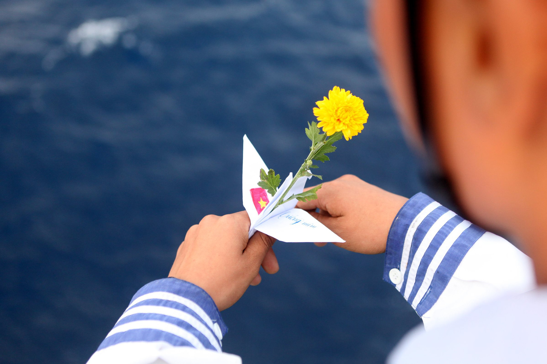 Cô con gái của một chiến sĩ Hải quân Việt Nam hy sinh ở vùng biển Trường Sa, đã tha thiết nhờ những người đồng đội của cha mình lấy giúp ít nước biển nơi người cha ngã xuống, để đặt chai nước biển đó trên bàn thờ của gia đình…