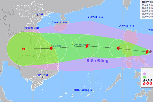 Dự báo bão số 4 khi cách đất liền Đà Nẵng-Bình Định khoảng 170km có sức gió giật cấp 17. Từ chiều 27/9, Trung Trung Bộ, Bắc Tây Nguyên mưa to đến rất to.