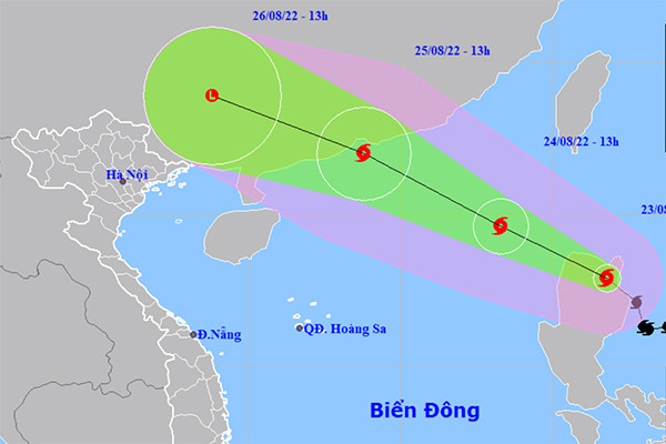 Dự báo khi bão Ma-on vào Biển Đông (trở thành cơn bão số 3 năm 2022) sẽ di chuyển theo hướng Tây Tây Bắc, tiếp tục mạnh thêm, có lúc giật cấp 13.