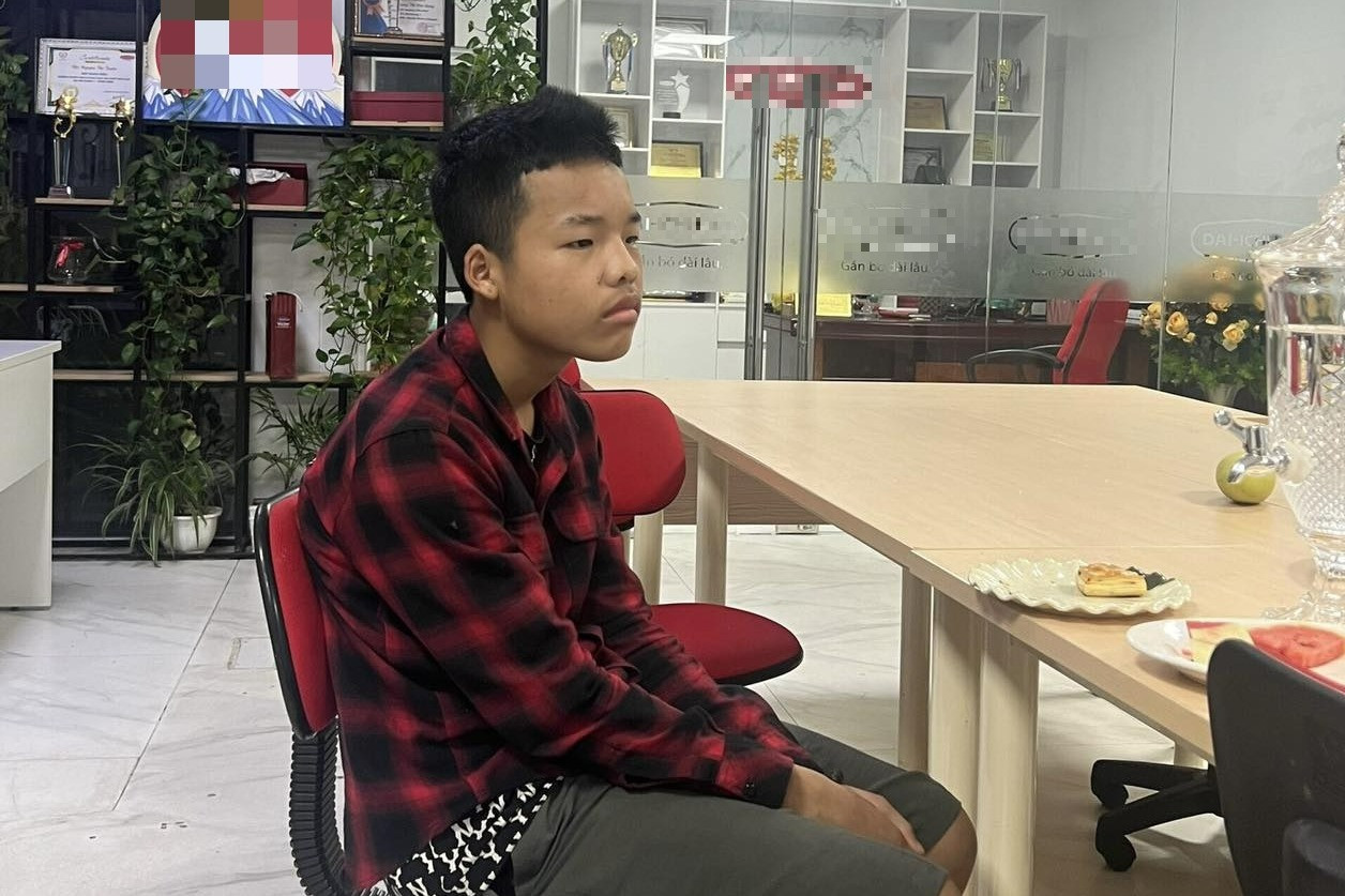 Khi đang đi bộ quãng đường hơn 300km từ Hà Nội về Hà Giang, đoạn qua huyện Sơn Dương, Tuyên Quang, cậu bé 16 tuổi được công an xã giúp đỡ về nhà trong đêm.