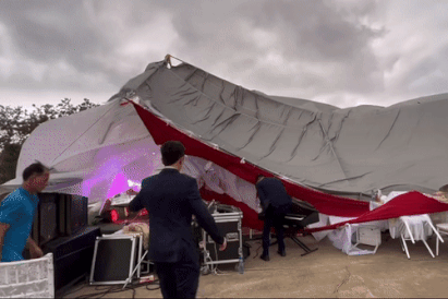 Rạp đám cưới ở Vĩnh Phúc đổ sập vì gió mùa, chủ và khách nháo nhào chạy cỗ
