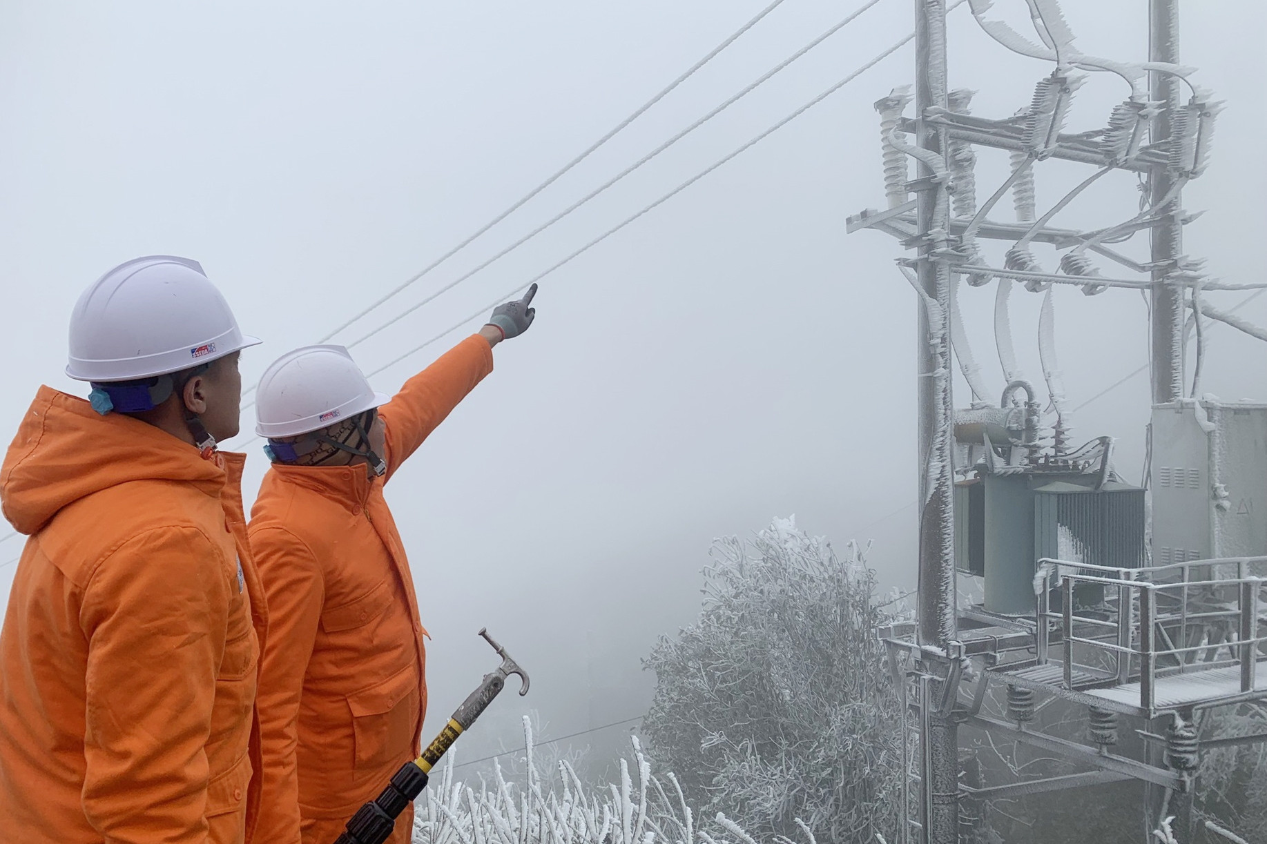 Thời tiết rét hại khiến băng giá bám dày vào đường dây, ngành điện phải chỉ đạo kịp thời xử lý tránh các nguy cơ có thể gây nên sự cố lưới điện.