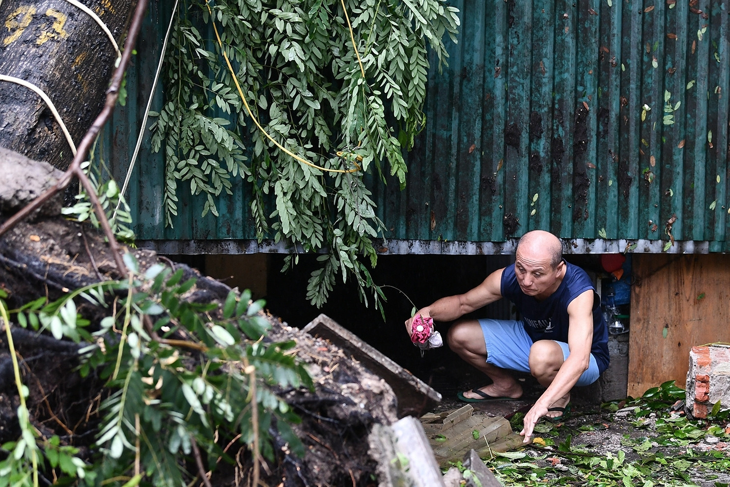 Trong khi bão số 3 Yagi vào tới Quảng Ninh, Hải Phòng thì nhiều cây xanh và nhà mái tôn trên đường phố Hà Nội cũng bị đổ, sập. Lực lượng chức năng có mặt kịp thời dọn dẹp để đảm bảo an toàn giao thông.