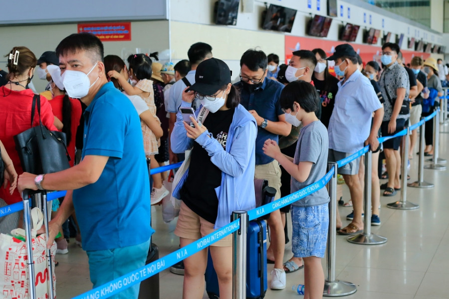 Trên trời, tàu bay phải bay vòng vèo chờ hạ cánh xuống sân bay Tân Sơn Nhất, dưới nhà ga khách nằm chờ vạ vật. Còn sân bay Nội Bài khu quốc nội cũng quá tải trầm trọng. Kể từ giữa tháng 6, hai sân bay cửa ngõ này liên tục “thất thủ”.