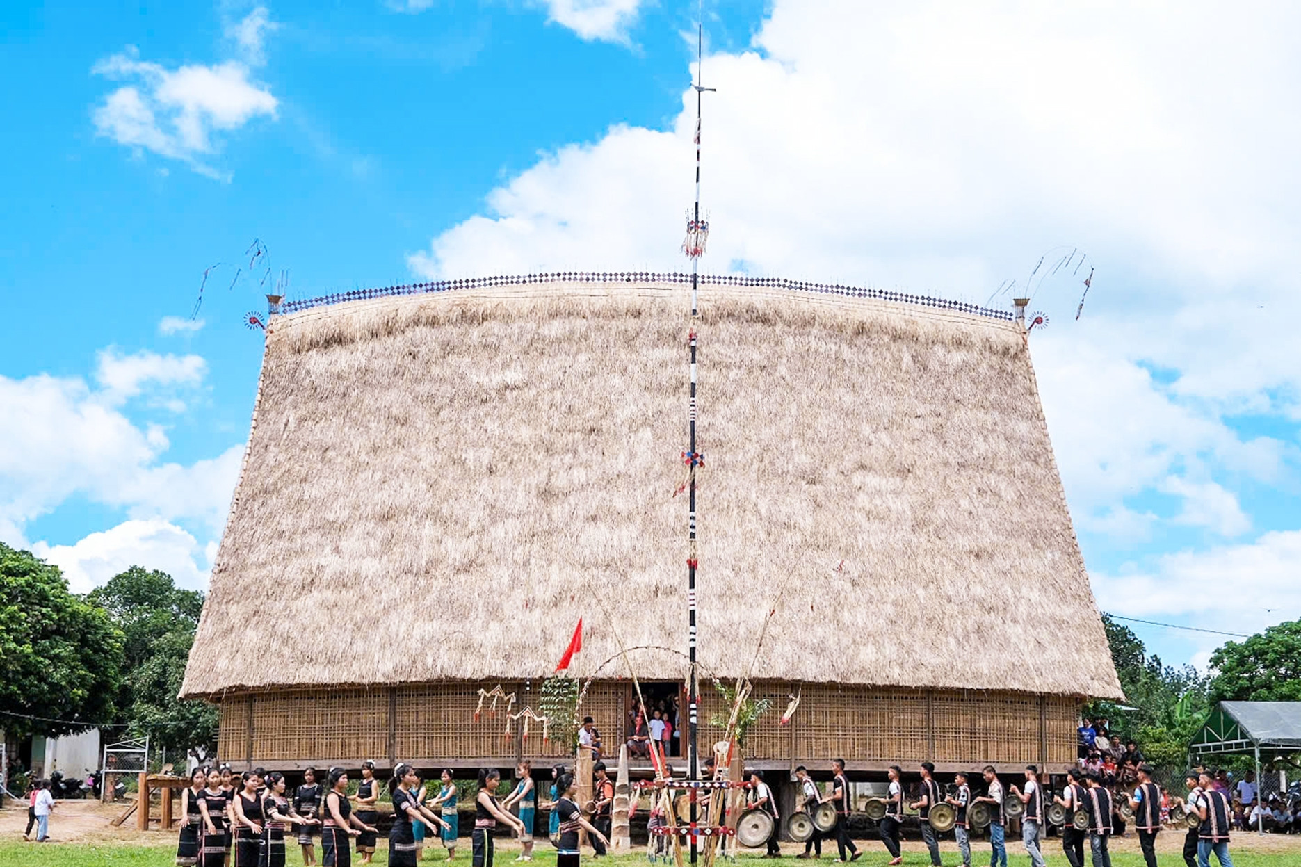 Sau vụ cháy hơn một năm trước, đồng bào Ba Na làng Kon Băh (xã la Khươl, tỉnh Gia Lai) đã đoàn kết chung sức dựng lại nhà rông mới, nơi được coi là "linh hồn" của người Ba Na.