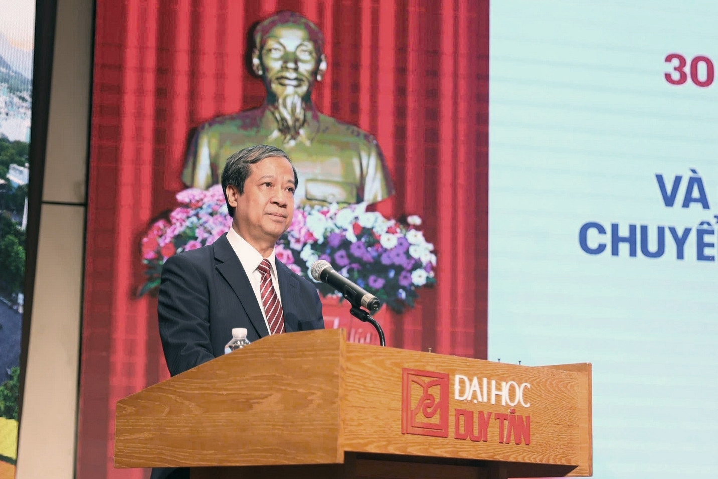 'Tôi mong rằng, sự thay đổi này không phải là thay đổi một cái tên mà hướng tới chiều sâu, giải phóng sức sáng tạo, hướng quản trị hiện đại, thông minh” - Bộ trưởng GD-ĐT nhấn mạnh tại lễ công bố Trường ĐH Duy Tân thành ĐH Duy Tân.